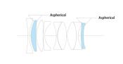 Formule optique : 9 éléments en 7 groupes avec 4 surfaces asphériques.